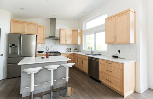 As you step inside, you'll exhale the breath of salty, Salish air and feel relief in the space your renting short term. The interior is meticulously designed with clean lines, high-end furnishings, bright whites, and the owners have spread dashes of colors to make you feel lighter.