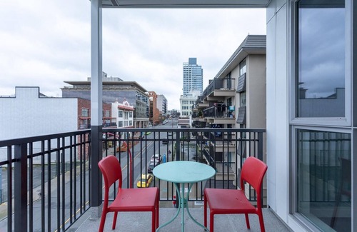 New, bright, and comfortable one-bedroom condo located in trendy Old Town Victoria. Steps away from restaurants, bars, coffee shops, boutiques, the inner harbour, and everything downtown Victoria has to offer. Enjoy the comfy queen-sized bed, fully stocked kitchen with all the essentials, and TV with cable and Netflix. Our 520-square-foot space is bright, has high ceilings, and has a balcony off the dining space. We provide a fully equipped kitchen, an extremely comfy American leather couch, and an eating area with floor-to-ceiling windows. This sleeper couch is the most comfortable sleeper couch available. The Charming Cityzen will be a carefree experience for your stay in Victoria. For the security of owners and guests alike, there are security cameras mounted outside the front door of the building, building interior hallways, and the parking garage. There is a decibel monitor in the living room of the condo that monitors but does not record sound. This is such a great complex we have multiple units here, which is great for large groups or extra-large families needing multiple units.