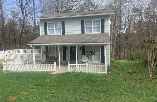 Adorable cottage on south side of beautiful Lake Allatoona sitting on 1/2 acre with a gorgeous beachjust a 3 minute walk away. Enjoy access to a gorgeous point where you can put your own hammock up in between trees. With all new flooring, new gas grill, outdoor wood burning fire pit and gas fire pit, you will find yourself right at home. Home overlooks fishing jetty's where some of the best fishing on Lake Allatoona exists. All new furniture and 75 inch TV as you enter makes the home cozy for some great movies. Large TV's upstairs allow for viewing throughout. Huge deck (Just put in new one) is great for entertaining.
