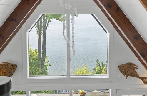 2 bedroom - 1 bath + office A-frame Cabin. We kept the retro Cabin vibe and renovated it with modern amenities. Majestic ocean views, both inside and out. The view from the loft makes you feel like you are floating on the water.