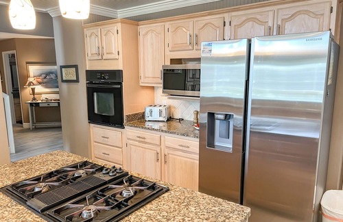 The First floor pool level/game room, is perfect for those just off the boat, out of the pool, or in from the beach. There is a living area complete with 55" flat screen television, stereo system, and table games including ping-pong, air hockey, foosball, and a new professional pool table. First Floor has large Bedroom and Bathroom with Walk-In Shower which can also be utilized by handicapped guests.
