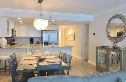 - Spacious beachfront condo with gulf views, pools, and walkable dining