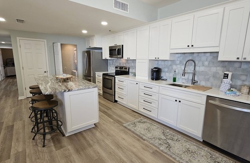 The living room furniture is very comfortable and the spacious dining area offers seating for your entire party. The living room and master bedroom adjoin the balcony. The kitchen is fully equipped, just bring the food and your paper goods products. Sleeps 6 in beds. The master bed is a king size and there are two full size beds in the guest bedroom. Both privately, adjoin a bathroom. There is a sleeper sofa. The beds are made with crisp white linen. Fluffy white bath linen is supplied, so bring make up removal wipes. Whether you choose to dine-in or out, you will enjoy the granite counters and a full kitchen with a combo washer/dryer. There is a one day set up of basic complimentary amenities. Please plan to shop for your additional needs. Wireless internet is available in the condo and throughout the property.