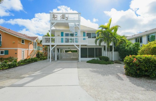Welcome to Sideways! This elevated two-bedroom, two-bath retreat is perfect for families and just steps from the Gulf beaches and one house from Sarasota Bay. A ten-minute walk takes you to Bridge St where you can enjoy seafood feasts, beach walks, shopping, and pier adventures on Anna Maria Island.