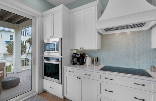 Enjoy the spacious bright and open kitchen and enormous balcony area all to bring the inside out and the outside in. The sandy footpath leading from the deck to the surf allows for easy, breezy jaunts to and from the beach---with a bird’s-eye view to keep tabs on comings and goings from the kitchen and deck. There also is an enclosed outdoor shower for that post beach rinse.