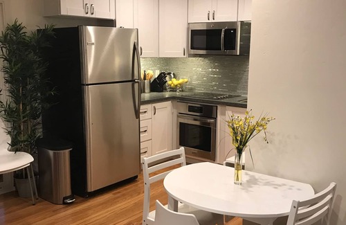 Walk to the beach or relax in tranquil spacious back yard with hot tub and hammock. Sip wine while soaking up California sunshine in relaxing garden. Newly renovated modern design home. Conveniently located walking distance to grocery market, restaurants, pubs, and beach yet tucked away in a quiet safe neighborhood. The home is perfect for a romantic vacation, small group of friends, family vacation, or business trip. The home has fully equipped modern kitchen, air conditioners/heaters in each room, laundry room, TV entertainment center, and writing desk. It’s just a short drive to airport, downtown San Diego, convention center, and Coronado. Very relaxing zen vibe.