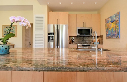 Light and bright with soaring 20' ceilings, my spacious Villa will welcome you home from the beach in island style. Professionally decorated in a style known as "Beach Lux" around my collection of art work by local island artist, it is luxurious without being stuffy. Quietly located above it all, my top floor luxury Villa offers stunning views. Watch the sunrise over Haleakula from the lanai, and enjoy brilliant Maui sunsets from the front landing or the privacy of your own bedroom.