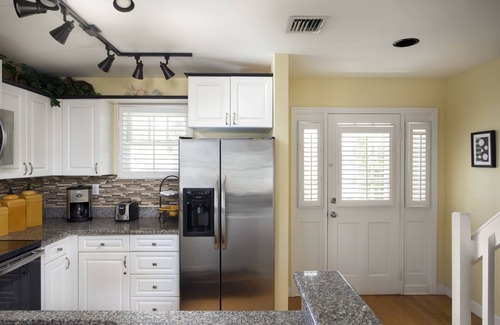 You will love our newly renovated 2 bed/ 2 1/2 bath private townhome in a secure community. Perfect location. This property doubles as our second home when we are in town. Renovations include new wood flooring, fresh paint, new kitchen with stainless appliances and granite tops. All furnishings and accessories are new. Private courtyard with sundeck, and night lighting overlooking a private park. The 2 Bedrooms are upstairs and each have high vaulted ceilings. King bed in owner's suite and two twins in second bedroom. Master bedroom has a private balcony. Living room sofa makes into a queen sofa sleeper. 1/2 bath downstairs in the living area. Free WIFI and three tvs and stereo. The outdoor courtyard is perfect for relaxing, you will not want to go inside. Tropical landscaping. Just steps to the heated pool. All located in the beautiful private community of Truman Annex.