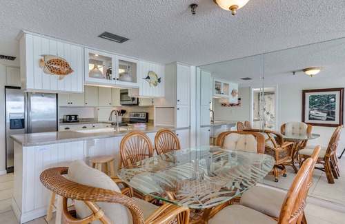Beach Place 511 is a top floor unit that has been tastefully refurnished with new carpet, leather living room furniture, a new dining room set with seating for 8, and new bedroom furniture including a king in the master bedroom.