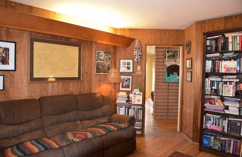 This home features a living room/dining room with a fireplace and a piano, plus tons of books and art to peruse, with a newly remodeled kitchen just off the dining room and outdoor patio. A separate office with desk and office chair is just off the kitchen, plus fast wifi, perfect for those who might need to work while on vacation. Just off the living room, you will find a separate den with a TV and slider door to the patio. Just down the hall, there is one bedroom with a queen bed and a desk/work station. There is a bathroom in this hall, with a step down shower/tub. Just past this, you will find a the primary bedroom with a queen bed and an en suite full bathroom. You will love the hot tub on the enclosed private patio and the outdoor shower (perfect for the return from sandy beach adventures or surfing sessions).