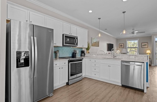 Come visit Sea Salt Villa! This is a 3 story villa completed in 2018. It is located across the street from beautiful Atlantic Beach. From the front door to sandy beach is just a 5 minute walk. Restaurants are located minutes away by foot. This home boasts 2 master bedrooms, both with king temper beds. The third bedroom has a massive bunk for the kids or kids at heart. The bunk has a full bed on the bottom, twin on top and twin trundle as well with new temper mattresses for a comfortable nights rest. Each bedroom has its own private bathroom. The villas host a community pool surrounded by large palm trees and play area. This home comes with nice furnishings and equipped with kitchen supplies, games, child necessities, and more. We, the owners, strive for high standards on this rental. Most of the furniture is all brand new (2018) as well as all the mattresses to make this stay as nice as possible. Key-less entry codes even your kids could remember. Linens are available for rent through BlueWater (https://bluewaterlinens.com/shop/). You can also bring linens. If you need anything, reach out to us during your stay. Enjoy!