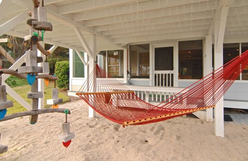 The whole family will feel at home in this unique and expansive weekly rental. Dine alfresco on the wraparound screened porch (after cooking in the full kitchen or private grill!) which includes sweeping ocean views. Enjoy family games on the large, private lawn or curl up with a book on the hammock outside.