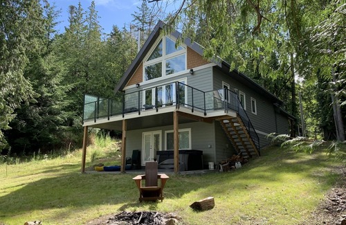 Beachfront new chalet home w/dock access and mooring buoy is located in Salt Spring Island. Beachfront new chalet home w/dock access and mooring buoy provides accommodation, featuring Parking, Pet Friendly, TV, among other amenities. This House features Parking, Pet Friendly, TV, to make your stay a comfortable one.
