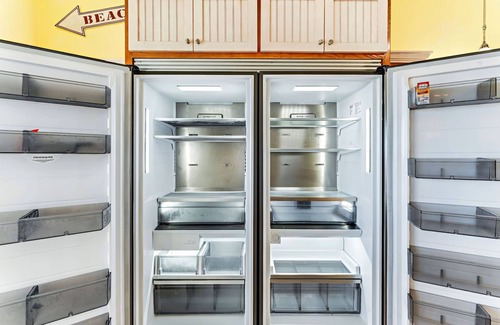 The exterior of this property offers over 1,000 square feet. of ground floor entertaining area with a private beachfront swimming pool (you have the option to heat the pool for an additional fee), hot tub, and outdoor cooking area with gas grill (guests provide propane), refrigerator, billiards table, and picnic tables. There is a large downstairs storage room available for guest use, a bonus refrigerator on the ground level, under-house concrete parking, an outdoor shower, and fish cleaning area at your disposal. A community boardwalk leads directly to the white sandy beach just steps from your front door. Exterior stairs lead to the wrap-around decks of this charming vacation home.