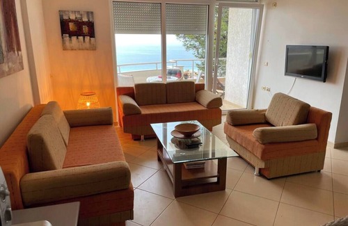 Take it easy at this unique and tranquil getaway. Nestled in Sarandë, this delightful apartment offers a marvelous living experience for guests. With a cozy bedroom and a charming living room featuring a sofa bed, this space is perfect for a relaxing getaway. Experience what Sarandë has to offer with a stay at our apartment. The stunning Ionian Sea- Front View and vacation-ready layout for 4 guests (including elevator access) and 20meters away beach made of rocks.