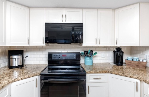 Beautiful direct beachfront 3-bedroom, 2-bath condo with stunning views and all the conveniences of home! The kitchen features modern cabinetry, sleek black appliances and granite countertops, while the living room boasts a large comfy sectional sofa, perfect for kicking back to relax after a day at the beach!
