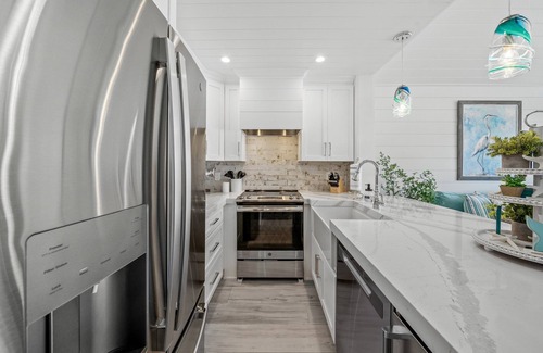 Beachfront Paradise 2 is a beautiful BEACHFRONT 1 bedroom retreat located directly on the Gulf of Mexico! This welcoming condo is the perfect escape for guests seeking a fantastic vacation experience. With its enchanting decor and cozy atmosphere, you'll feel right at ease from the moment you step inside. This welcoming condo is the perfect escape for guests seeking a fantastic vacation experience. The condo is located on the top floor (2nd level) with GORGEOUS, unobstructed views of the beautiful beaches of Anna Maria Island and Gulf of Mexico. You really can't get closer to the beach than this!! You'll have the BEST seat for nightly sunsets on the beach. The condo has been recently renovated, including luxurious coastal decor', new furnishings and linens. The full wall of sliders in the living room let in tons of natural sunlight, plus open to the stunning beach views. The updated full kitchen has sparkling white Quartz counter tops, stainless steel appliances, plus a Keurig coffee machine and a traditional drip coffee pot as well so you can enjoy your morning coffee from your private balcony. The bedroom features two comfortable queen beds, ensuring a restful night's sleep. The bathroom has gorgeous Quartz counters and a walk-in shower. Plus, take advantage of the WiFi to stay connected, and enjoy the convenience of amenities like icemaker, and the washer and dryer conveniently located INSIDE the condo for guest use. It is perfect for a long stay during winter months or shorter family vacations. The condo complex is a small resort with a community heated pool, outdoor tiki tables and both propane BBQ grills and charcoal. There's assigned by unit onsite parking and it is in centrally located in Holmes Beach close to the trolley stop. Anna Maria Island has a FREE trolley that travels the full length of the island from the Anna Maria City Pier to the north to Bradenton Beach to the south. Reserve your vacation stay today. Whether you're lounging in the living area or exploring the nearby attractions, you're sure to make fantastic memories with a stay at our place.