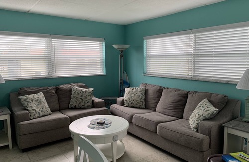 Nicely renovated condo 2 minute walk to the beautiful Cocoa Beach. The colorful beach decor inside will make you feel like you were already at the beach. This is a light and cheery corner unit with easy access to courtyard and parking. Condo is fully furnished with all the comforts required for a day or a week at the beach. Small complex, only 14 units, 7 units per floor. This unit is on second floor. Entire inside has been updated and renovated including beds, flooring, furniture, air conditioning and all appliances. Great unit, great location for that Florida beach community lifestyle! Condo has a wonderful courtyard for relaxing after a day at the beach. Conveniently located in Cocoa Beach, close to everything and within walking distance to pier, restaurants, activities. Daily, Weekly, Monthly rates available