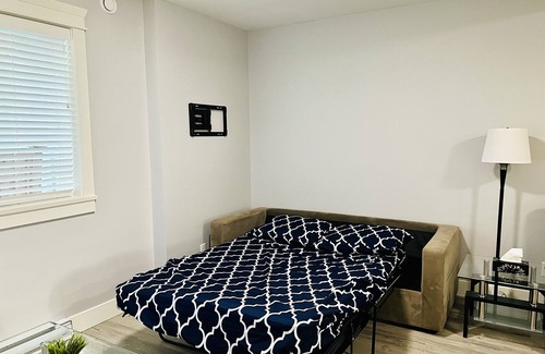 Perfect for couples, solo travelers, small families and students. Located in a family friendly neighborhood, this suite is equipped with a full kitchen, coffee, tea, pots, dishes and many more. Has basic amenities/toiletries with a Queen bed that sleeps 2 people, a pull out couch (bed that sleeps 2 extra people when pulled out), an In-suite Laundry and parking on our driveway.