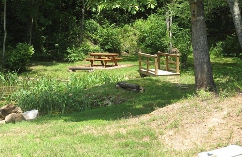 There is also a large community catch-and-release pond a short walk from the cabin with a grill and covered picnic area .