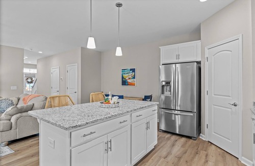 This beautiful, well-equipped 3 bedroom, 2.5 bath townhouse. The house lives well for both a friends or family retreat with an open living and kitchen on the ground floor with a powder room. Go up to the 2nd floor for an en suite master bedroom with a king bed while down the hall is a second bedroom with a queen bed and a third bunk bedroom that can accommodate adults. This includes a queen bed on the bottom, a trundle bed below the queen, and single bed on the top bunk. There is a full bath in the hall.