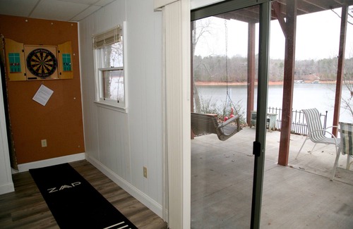 This newly renovated and newly decorated house has 3 bedrooms that have their own bathrooms and patio overlooking the water. Everyone has a mini-suite of their own! The kitchen is supplied with all the basic essentials and includes a brand new electric convection oven and refrigerator. Beach towels, bathrooms towels, and bedding is provided. Relax on the screened-in porch and enjoy views of the lake with a cup of coffee (or other preferred beverage). The table on the screened-in porch is perfect for conversation among family and friends, dining, and board/card games. The downstairs patio also has a table with seating for 4 and a swing bench - perfect for relaxing and taking in the scenery or engrossing yourself in a book.