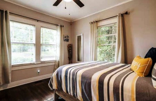 Charming, Warm and Cozy 2 bedroom 2 bath Home with a spacious yard, amazing Sun room and privacy deck in Historic Downtown Jonesboro District. This intimate home was built in 1924 and combines original features with a contemporary style and flavor. Our house will make you feel right at home. We are conveniently located 12 miles south of Atlanta Airport and approximately 35 minutes from downtown Atlanta.