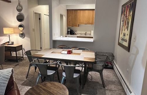 In the center of the Colorado Rocky Mountains lies our cozy Frisco retreat, ideal for your upcoming mountain getaway. Spend your days exploring the nearby ski resorts of Keystone, Breckenridge, and Copper Mountain, all within a free bus ride or short drive. After a day on the slopes, you can unwind in the community hot tub or take a refreshing dip in the on-site pool. Cozy up by the fireplace in the evenings and enjoy the convenience of a well-stocked kitchen, complete with dishes, and utensils. Stay connected with the free WiFi, or indulge in some family fun with the selection of games and books. With two bathrooms, towels, and basic toiletries provided, you'll have all the essentials for a comfortable stay. And with parking available on the property, you can easily explore the surrounding area. Whether you're seeking adventure or relaxation, our Frisco vacation rental is the perfect home base for your Colorado getaway. Walk to shops/restaurants in Downtown Frisco. For extra space enjoy the Den just off the Living Room. Clean Pay Laundry Room; Trails just out your door; biking; skiing; boating and Beach area at Lake Dillon; This condo has everything at your fingertips. Great for the outdoor enthusiasts. For those wanting to work a little while in Frisco, there are two 27" monitors, a docking station as well as a mouse and keyboard. All you need is your laptop.