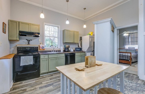 Beautiful guest house with high ceilings and full kitchen! This house is spacious and modern in a quiet neighborhood, set far back from the main house. Enjoy a lush yard with a private driveway that leads to your 2 parking spaces. We take pride in our property and in our southern hospitality! Centrally located in the heart of Summerville - close to hospitals, dining, and plantations.