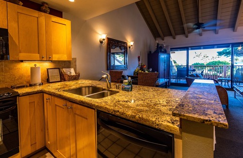 This beautiful, two-bedroom condominium is decorator furnished, remodeled, and located close to the ocean and lower pool. The master bath features full walk-in shower with glass block enclosure and views of Haleakala along with double sinks and granite countertops. Bath and kitchen major updates with granite counters, maple cabinets, fixtures, appliances, etc. .