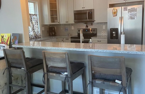 The living room offers two sofas, one of which is a queen sleeper, and a 54" smart tv with cable and internet provided. The second floor has three additional bedrooms and two full baths, one with a tub/shower combo. Two bedrooms each have a queen bed while the third bedroom has a double bunk bed with a pull out twin bed. The home has central air and ceiling fans throughout. Both the screened in porch and the wrap around porch are favorite gathering places and offer plenty of seating. 2021 EZGO Golf Cart for 4 is included from April 1 - November 30. We love our home and hope that all guests will treat the home as if it were their own!