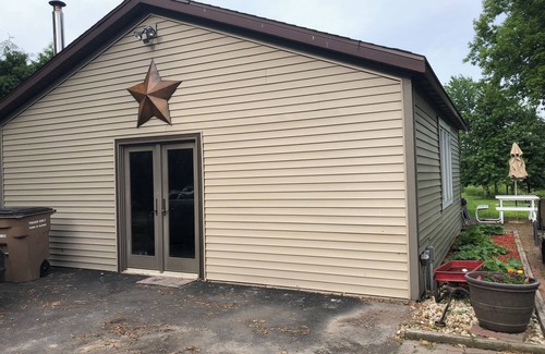 Located 3 miles west of the EAA grounds in Oshkosh, this charming house is a dream. With 3 tremendous bedrooms, each featuring a queen bed, guests will feel right at home. The welcoming living room opens up to an enclosed back porch and deck which leads to an above ground 15’ pool. The front porch offers open seating and a newly enclosed sitting area. There is a separate 8x8 tiny house with loft bed and AC. The party shed offers additional entertaining space for hanging out and watching movies on the big projector screen, perfect for relaxation. The 3 bathrooms are equipped with amenities like a hair dryer, soaps and towels. Stay connected with WiFi and enjoy the convenience of a washing machine, dryer, and iron. Plus, the fitness room and AC ensure a comfortable stay. You're sure to make fantastic memories with a stay at our place.