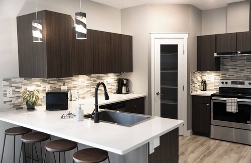 The beautiful and spacious kitchen boasts granite countertops and stainless steel appliances. The kitchen is fully equipped with everything you need to prepare meals, including a selection of spices and oils. Start your morning off right with a fresh brewed coffee, tea or hot chocolate, all of which is provided during your stay. Exit the patio doors and you will find a small deck with a Barbeque.