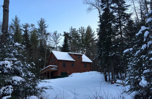 Come enjoy the privacy and seclusion only a Log Cabin in the White Mountains can afford. Our home is situated on 50+ acres with no visible neighbors, yet we are only 15 minutes away from some of the best hiking in the Whites and 20 minutes to the Franconia/Sugar Hill/North Woodstock/Lincoln downtown areas. The home was built in 2005 and has been well cared for and upgraded since that time. Inside you'll find brand new soapstone countertops throughout the kitchen and bathrooms, vaulted ceiling, hardwood floors throughout, incredible sunlight, plus brand new Viking and Bosch appliances. The place is very clean and updated. We have a large master suite upstairs (Qn bed) with an en suite and full-sized futon; a renovated bedroom downstairs (Qn bed); a bedroom (2 twins) downstairs; a loft that sleeps 2 (Qn pullout). Outside, please feel free to hike the property or walk alongs the streams down to the Wild Ammonoosuc for a swim. Alternatively, you may just simply want to relax on the deck or enjoy the fire pit out back. This cabin provides activities for 4 seasons! Meditate, write, hike, ski, re-connect. Regardless, we are confident that you will leave our home thoroughly renewed and ready for whatever life throws your way.