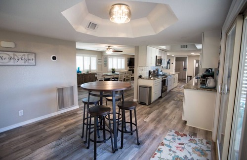 Welcome to our beautiful Lake Havasu home , located at 2375 Beverly Glen Place in a quiet friendly community, just inland from Windsor State Park and London Bridge. Our open concept modeled four-bedroom home offers a king bed, three queen beds, two full beds, a twin bed, and an additional pull-out couch queen bed to comfortably sleep 8-10 guests. Our two full sized bathrooms are well stocked and ready for use. Along with a river view, our spacious living room is furnished with enough seating for the whole family to enjoy a show on the Smart TV. We spend most of our time at the large dining table, which offers plenty of table space for everyone to enjoy an early morning breakfast, or to play one of the many board games we have available for use. If you are like us and prefer to cook your own meals, our fully stocked kitchen offers up to date appliances and enough counter space to allow multiple chefs to prepare any dish. If you prefer to grill, our BBQ is located on the back patio with outdoor seating to relax under the stars. For guests that have multiple vehicles or toys, we offer driveway, street parking, and a side lot that can accommodate any oversized toy you may have.