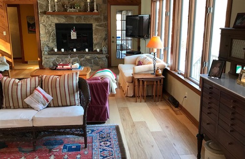 Our 4000 square-foot home includes four bedrooms (3 with queen beds); three full baths (plus powder room); a wide open main room with great views of Long Lake; and a fully-equipped kitchen. The upstairs lofted bedroom has an office, and the basement bedroom also has an office. House sleeps 8 comfortably with room for 12 by utilizing bunk room and hide a bed.