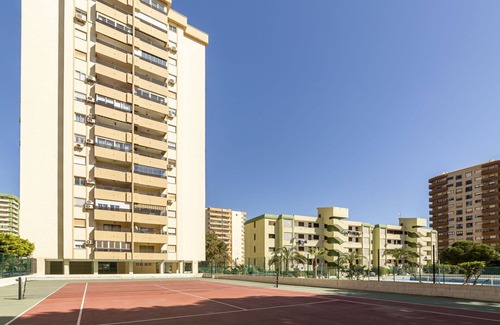 Torre Marfil is an apartment block situated in a tranquil and sunny location, just 550 meters from the beach. It boasts a shared swimming pool (25 x 12 m, depth 100 - 300 cm, seasonal availability: 15.Jun. - 15.Sep.), a children's pool, and a tennis court, making it an ideal vacation rental for families seeking outdoor recreation. The property also features a WC in the pool area and a lift within the building for added convenience.