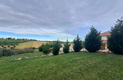 Villa Borgo Vacanze is a charming country house nestled among trees, meadows, and vineyards, providing a tranquil and scenic setting for your vacation rental. Situated on a hilltop in a quiet and sunny location, it offers a beautiful garden for shared use, perfect for relaxation. The property boasts a yard and the convenience of an installment plan for payments.