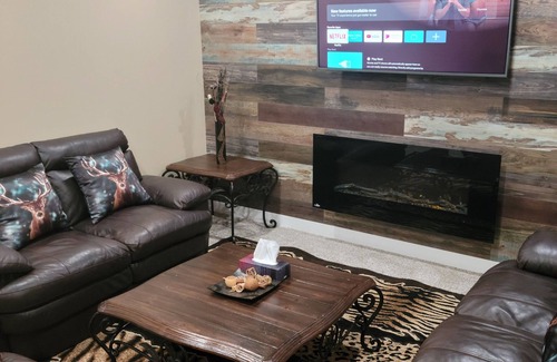 Kick back and relax in this calm, stylish space, separate entrance for your privacy and fully secured with a keypad. This suite has 2 bedrooms, master bed has a beautiful king bed and the 2nd bedroom has a queen bed. Both bedrooms give you the modern and stylish look followed by a full gorgeos bathroom, modernized living area and a full kitchen. This suite is 5 minutes from the airport and roughly 15 minutes from downtown *Free Coffee*Free Parking* Close to Restaurants and shopping centers