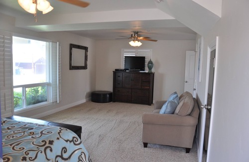Beautifully upgraded two-story beach house located in the quite little town of cayucos. Steps from the beach our large house includes granite counter tops, upscale furniture, flat screen tv’s in every room, wifi, upgraded appliances, large deck, two private patios, and fenced in yard with a putting green for extra entertainment. The upstairs has a large master suite with a king size bed and spa inspired master bathroom, guest room with queen size bed, fully equipped kitchen and comfortable living room with leather recliners. The downstairs is an extremely large master suite with a king size bed, a love seat that converts into a twin size bed, walk in shower, and a door that leads to a private patio. All linens and towels are provided for your convenience. There is a two car garage equipped with a barbecue, outdoor sink, and a new washer and dryer. We have a cart filled with beach chairs, umbrellas, and sand toys, all ready for a day at the beach.