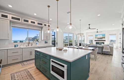 - Open-Concept Living Area – Light-filled and stylish, with plush seating, coastal touches, and Gulf views.