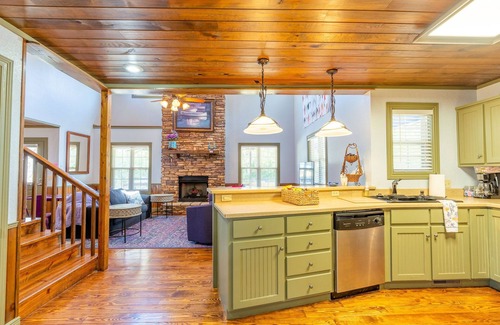 Upon entering the Hydrangea House the bright colors and rock fireplace offer a cozy space for playing games or just relaxing with your family. The kitchen is well stocked for preparing a meal and has a drip coffee maker. There is a small, stackable washer/dryer in the home as well. The front porch is a comfy space, equipped with ceiling fans, for your enjoyment. There is a screened back porch as well as a charcoal grill (charcoal provided). This property offers walk in access to the river where you'll find a gazebo for enjoying the peaceful flow of the river. There are also snacks provided as well as a scavenger hunt for the kids!
