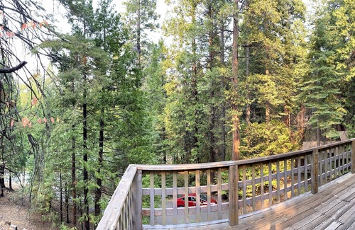 Our chalet is perched up in the canopies of the evergreens offering beautiful views all around and blissful solitude. This cabin offers strong wi-fi, central heating, full kitchen, 2-player indoor basketball, board games, books, smart speaker, and wood-burning fireplace -- ready to help you to make some beautiful memories with friends and family. Just minutes from Calaveras Big Trees SP, our place boasts easy access to hiking, swimming, and endless outdoor adventures! Up to 2 pets welcome. (A flat-fee of $100 for pet.)