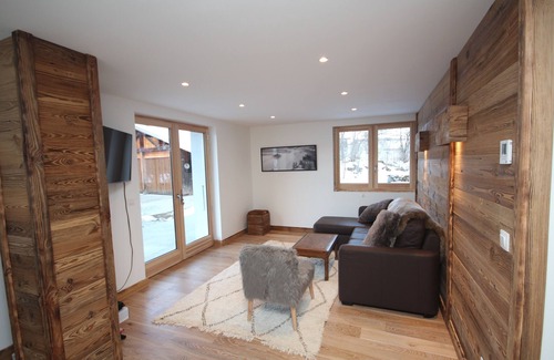 Newly renovated, ground floor, 2 bedroom apt. within a detached chalet in the heart of Les Carroz. Perfect location for ski-ing in the winter and enjoying the spectacular mountain scenery all year round. Conveniently located just 200m from the centre of the village, a 10min walk to the main ski lift station or a 1min walk to the free ski bus. Renovated to a high standard with access to south and west facing patios. Use of communal sauna/shower room and boot room with boot dryers and ski racks.