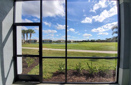 NEW construction, FULLY FURNISHED, 2/3 bedroom, 2 FULL bath, 1st floor condo on GOLF COURSE in GATED community! GRANITE, STAINLESS, 2 community POOLS. 2 SCREENED in lanai. 1 car GARAGE. MASTER SUITE. BEAUTIFUL VIEWS!! Golf amenities can be added to your stay for an additional fee. NO pets.