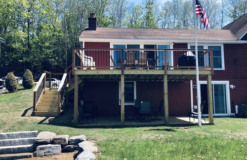 Our 3-Bedroom home sits on the shores of beautiful Lake Winnisquam. When you enter the front door you will be amazed at how open and spacious, yet warm and inviting our home is. The living room features vaulted ceilings, exposed beams, hardwood flooring and lots of over-sized windows to let the natural sunlight in. The house is open concept with the living room flowing into the kitchen and dining room area which makes it great for family gatherings and entertaining. The kitchen also features a breakfast bar for a quick snack or less formal meal for the kids. There is a large deck off of the dining room that comes complete with patio furniture, a grilling area and stairs to dock and beach.
