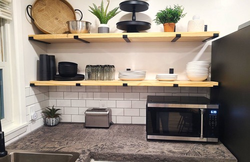 Experience all Oberlin has to offer from this beautiful and relaxing home. Stocked with cozy and convenient amenities that you're sure to appreciate and enjoy. The entire home has been completely remodeled and offers plenty of space to spread out. A 3 min drive to downtown Oberlin. In the warmer months, enjoy the gas grill, hammock, propane fire table, and a tree-lined view from the patio. Nature surrounds you with a view of the trees from every window.