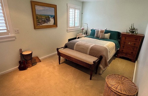 Enjoy our beautiful open-concept custom designed beach-house with 3 bedrooms for 6 people to sleep comfortably. A spacious roof-deck with ocean views to sun on is off the loft. Large open living area for cozy family gatherings, extends onto a furnished terra-cotta tile terrace with partial ocean view, comfy seating, gas BBQ, bar-sink. Spacious indoor kitchen with large island bar, seating for 10 people comfortably. Window dining table area with seating for 8. Amenities include central air, washer/dryer, WiFi, multiple parking spots, beach passes.