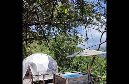 In the middle of nature, very close to a group of 6 very nice Glamping with special decoration for different occasions near Bogotá, with a privileged climate, the view is completely incomparable, fully equipped, with air conditioning on request, they have Jacuzzi and kitchenette for preparation of food or barbecues, rustic bathroom, rest and sun area, additional food and beverage services, they are decorated at request if desired, they are at a point equidistant between boquerón and Fusagasugá, paved road, parking.