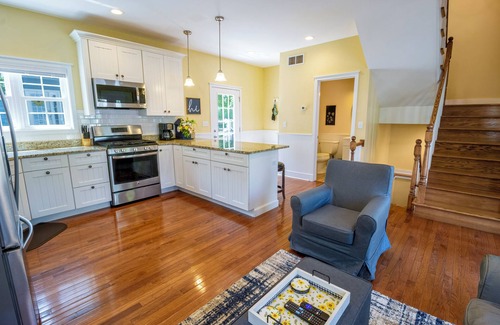 A cozy spot for everyone. Enjoy your time together and make lasting memories in this beautiful coach house. The main level allows for guests to lounge in the living room or cook up your family favorite in the fully stocked kitchen. When the day is done, the basement is the kids favorite place to "hangout".